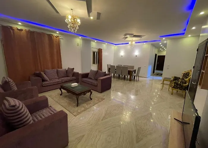 El Luxuries Apt In New Cairo- Auc Area, situado a una distancia de 2 km de Meeting Point Mall, proporciona Wi-Fi para estancias tanto de negocios como de ocio. El apartamento está al alcance de la Universidad Americana en El Cairo en El Cairo.